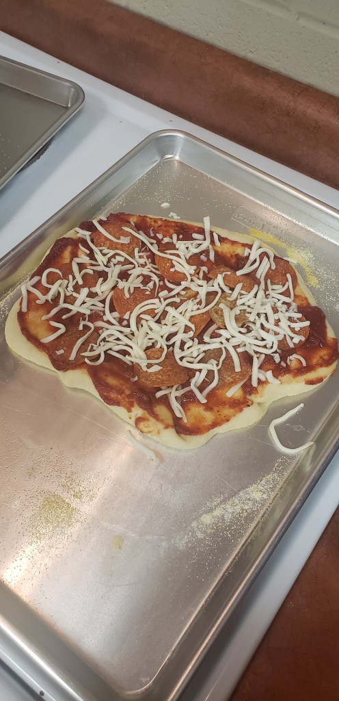 In The pizza we made for our lab it was not what I was expecting. I thought it would turn out better but it didn’t as much as what i thought so. I didn’t get to roll the dough flat enough because I was running out of time so the dough was kind of pretty thick. But other than the dough everything turned out pretty good. Only I wish I didn’t add as much basil to my sauce because I tasted the flakes a lot more than you should. The aroma of the pizza was very good. And it tasted really good. And when it came out of the oven it looked very good because the cheese was all melted. I personally would not make this again because the pizza reminded me of a lunchable because of the sauce I made and how thick the crust was and how kinda hard it was once it was chilled. But other than that it was a very fun lab and I enjoyed making the pizza.